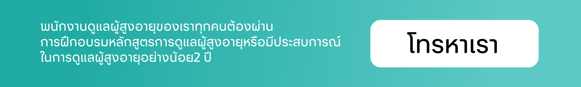 พนักงานดูแลผู้สูงอายุของเราทุกคนต้องผ่านการฝึกอบรมหลักสูตรการดูแลผู้สูงอายุหรือมีประสบการณ์ในการดูแลผู้สูงอายุอย่างน้อย2 ปีขึ้นไป